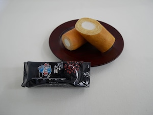 新潟祭りに欠かせない郷土芸能「万代太鼓」をイメージしてかたちづくられたこのお菓子は、柔らかいソフトクッキー生地を年輪上に焼き上げたバウムクーヘンのなかに、濃厚で